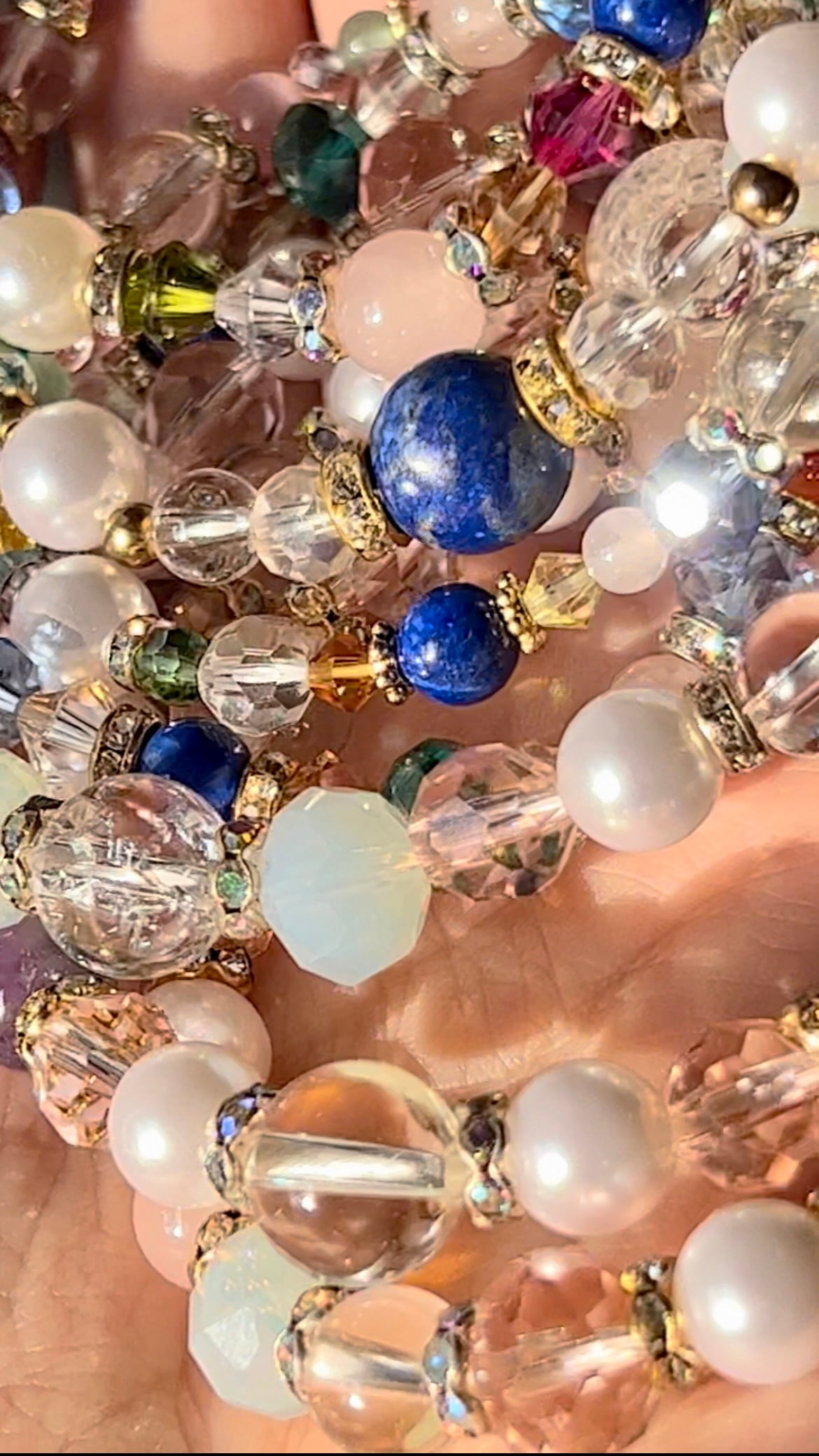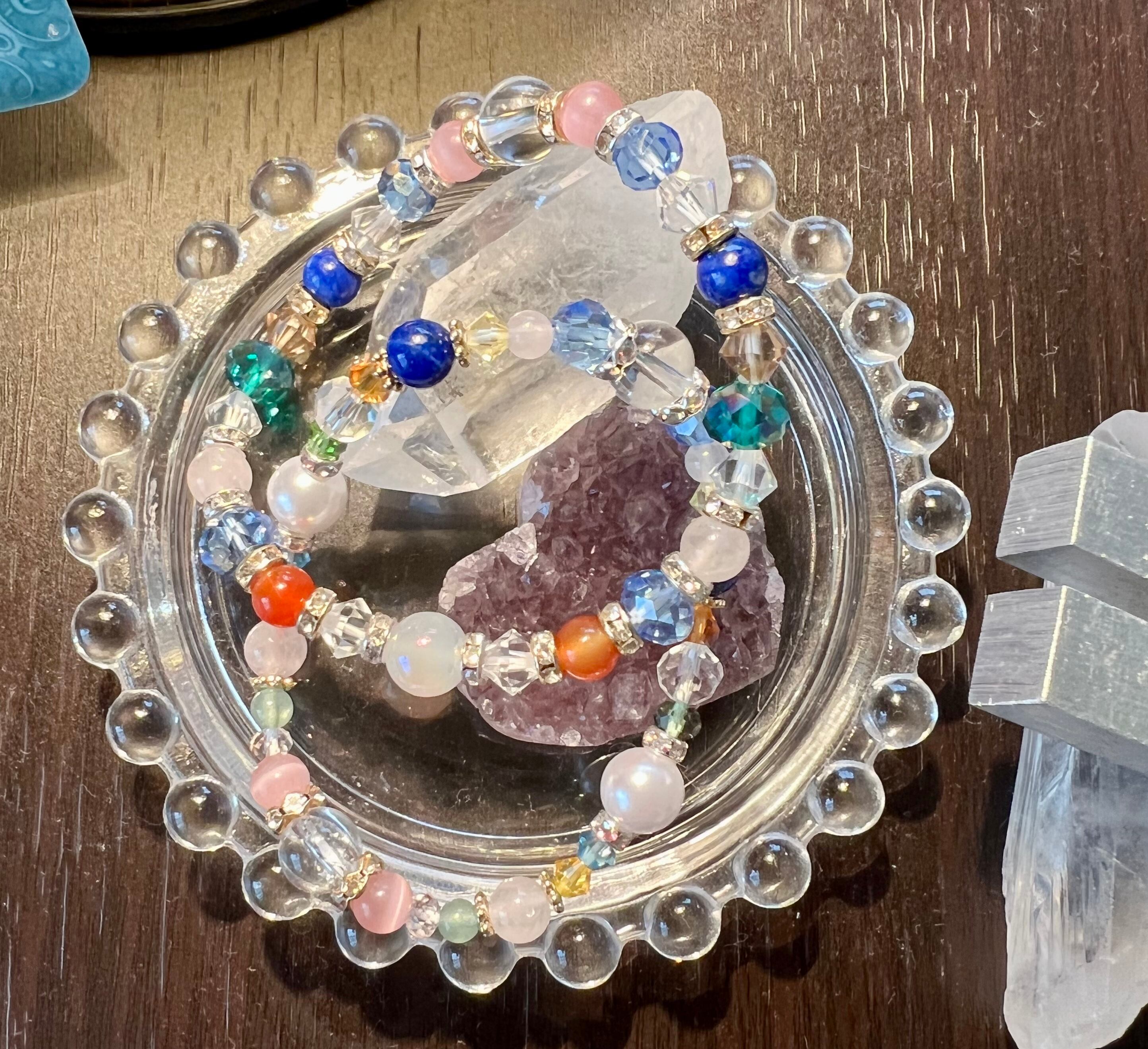Nameless light #003✨ Healing bracelet サイズ約15cm 天然石・ビーズ *アイリスクォーツ *クリスタル 伸縮性のある素材で作成しています。 Mayumi's healing room, Magical goods 名無しの光✨#003 この子たちみんな 自然に触れるのをとっても喜んでいる✨ エネルギー調整とパーツの交換などメンテナンスもします。