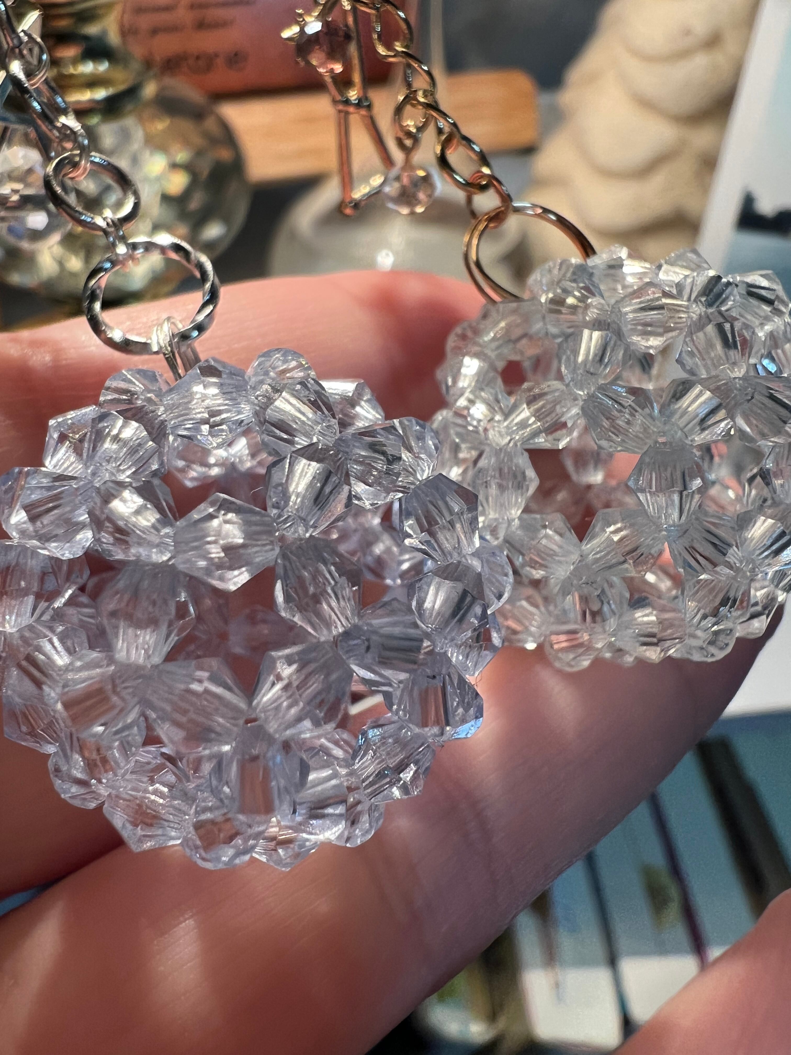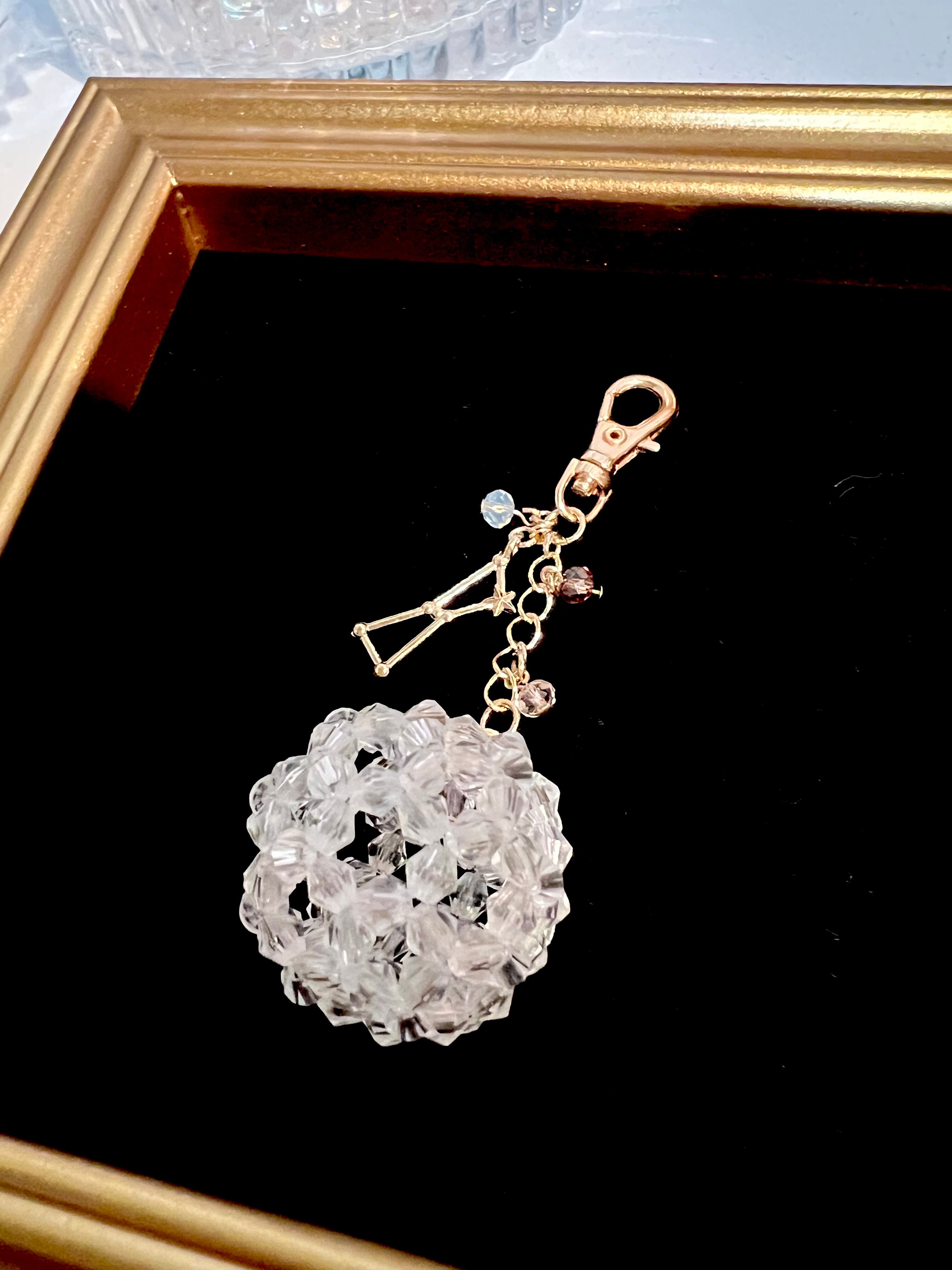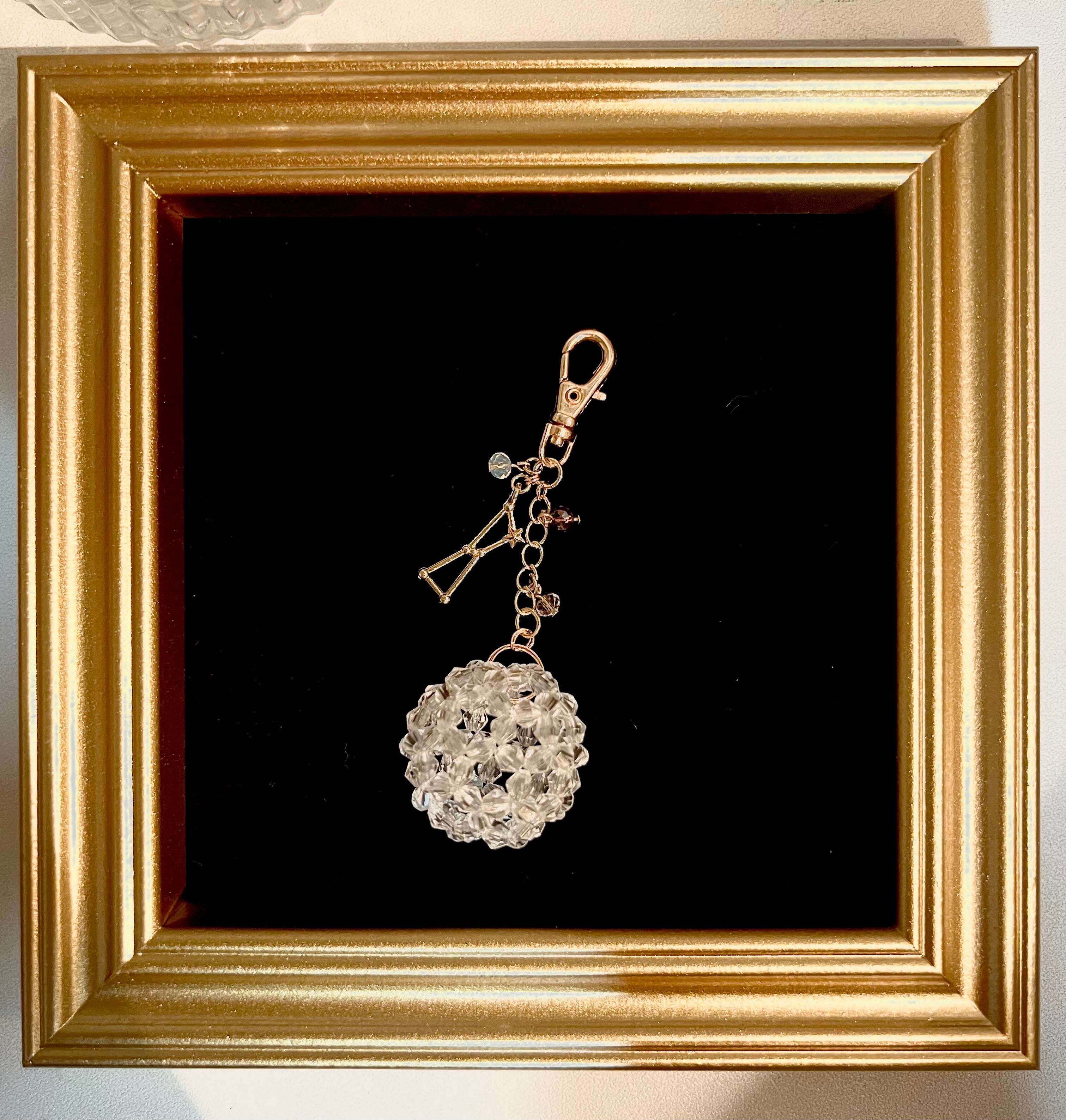 ホワイトのキラキラビーズでフラーレンボールを作りチャームにしました。